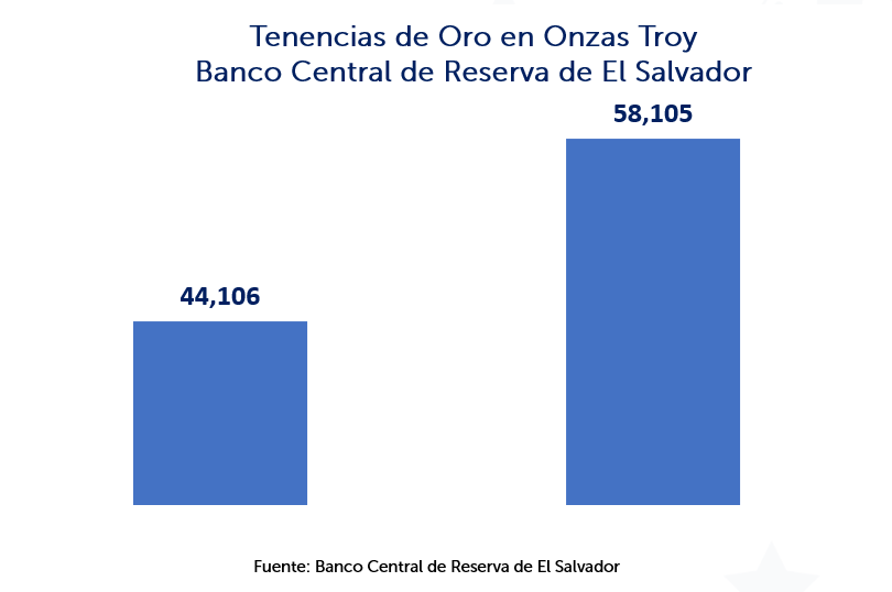 A nivel internacional el oro representa aproximadamente el 20% de las reservas globales mantenidas por los bancos centrales, situándose en segundo lugar detrás de las reservas denominadas en dólares. En los últimos tres años, diversos bancos centrales a nivel mundial han realizado compras anuales que superan las mil toneladas de oro. Para el Banco Central de Reserva de El Salvador, esta adquisición es un posicionamiento de largo plazo partiendo de un equilibrio prudencial en la composición de los activos que conforman las Reservas Internacionales.